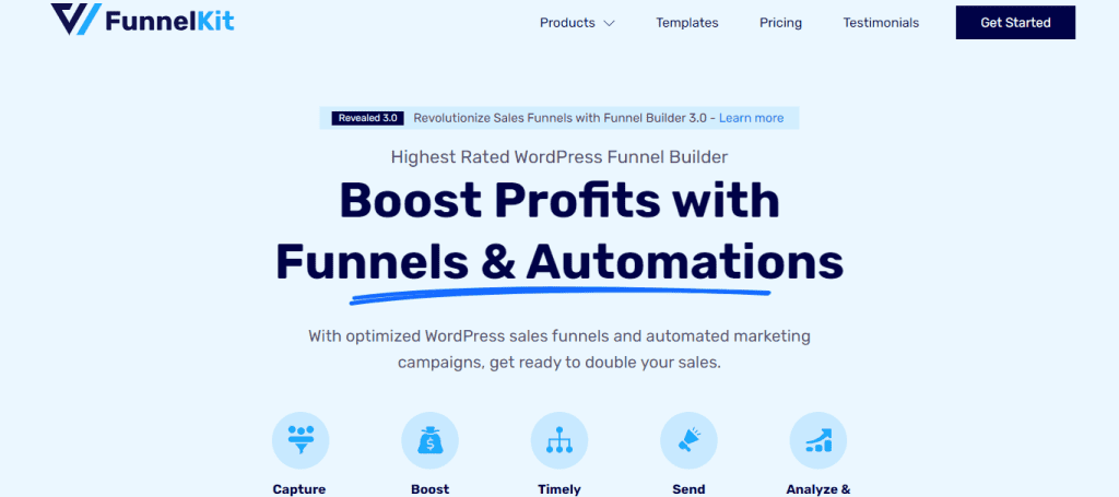 FunnelKit stands out as the highest-rated WordPress funnel builder for WooCommerce stores, promising to boost profits through optimized sales funnels and automated marketing campaigns.