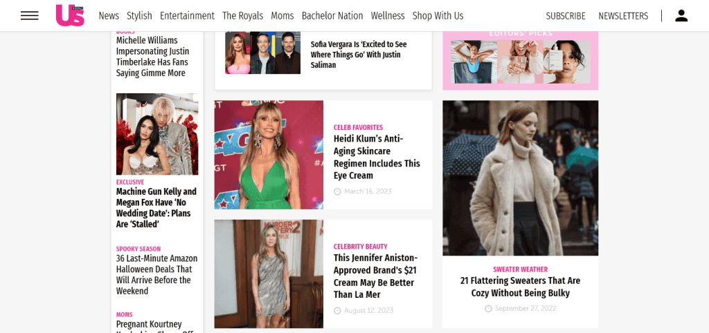 Us Weekly is a popular entertainment and celebrity news website built on the WordPress platform. It offers a range of content, including celebrity gossip, fashion, beauty, and lifestyle updates.