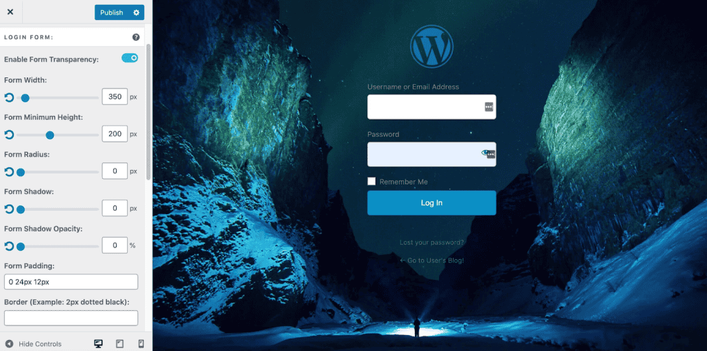- When you’re satisfied with the appearance of your custom login form, simply click the Publish button to publish your custom login page.