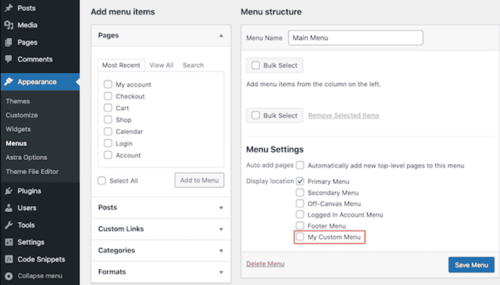 - Choose where you want your menu to appear (e.g., header, footer, sidebar).