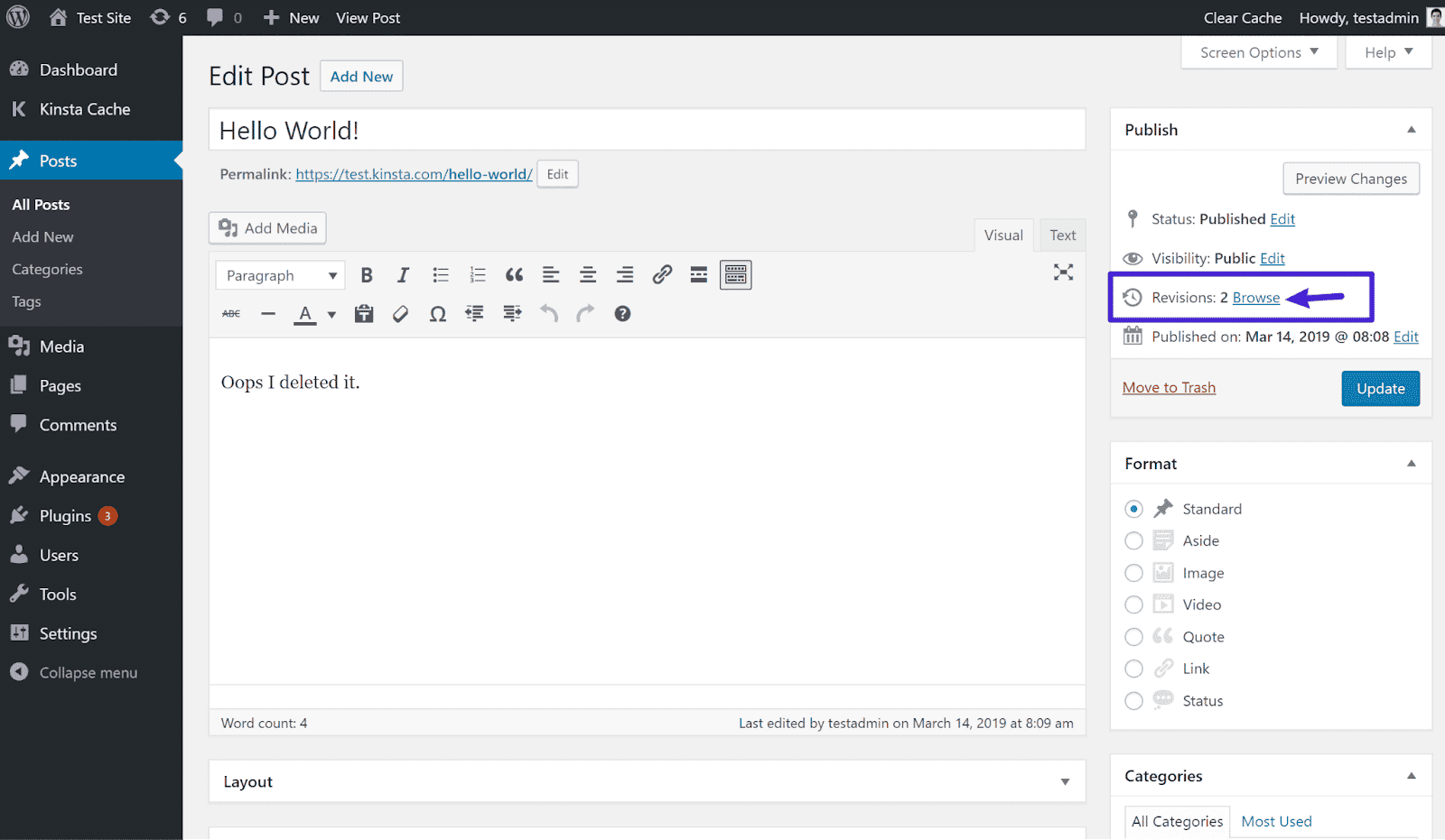 Posts: These are typically used for blog entries and are displayed in reverse chronological order on your site’s blog page.