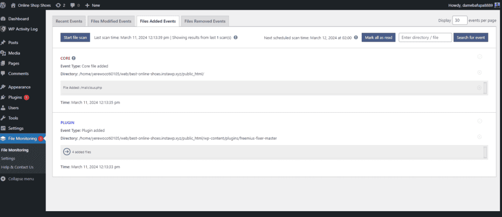 Hackers often tweak core WordPress files by inserting their own PHP version or creating new files with names that closely resemble those of legitimate core files.